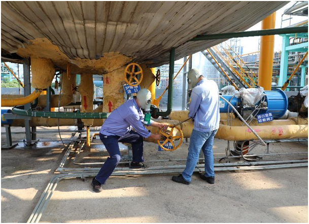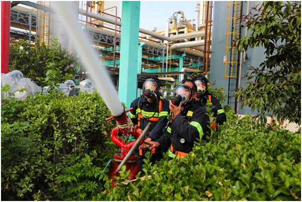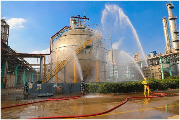 演练由公司总经理韩振坤主持。16:30演练正式开始,在演练总指挥王永金正确、科学、果断的指挥下,各级应急救援人员严格按照预案有条不紊地展开救援工作,在演练过程中应急处置小组迅速行动、科学有序、衔接到位,在县消防大队的支援下,应急救援人员顺利地消除了泄露点,险情解除。