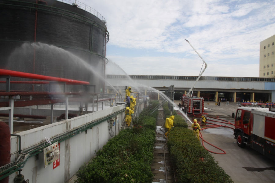 2019年6月29日下午,公司2019年度危化品重大风险甲醇泄漏应急救援演练活动在甲醇罐区举行。公司总经理助理葛超伟担任演练总指挥,县消防大队和县人民医院医生参与了应急救援演练,公司各职能处室、车间主要负责人现场观摩演练。