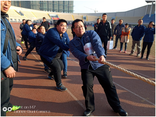 运动会开幕式结束后,第一个就是集体比赛项目—拔河比赛。由于半岛(中国)准备充分,非常顺利地进入了决赛,与自来水厂争夺冠军。双方运动员昂首挺胸,脚跟挨着脚尖,脚尖抵着脚跟摆好了架势,绳子就像是一根绷紧的弦,被双方紧紧地向两边拉动着。哨响一声,大家瞬间进入状态,脸涨得通红、咬紧着牙关使劲把身子下压,双手往后拉,脚使劲地往前蹬。双方势均力敌,绳子僵持在中间,旁边一阵阵呐喊似乎化作无穷的动力鼓舞着双方运动员,现场气氛高涨,助威声此起彼伏,最终半岛(中国)队取得了冠军!