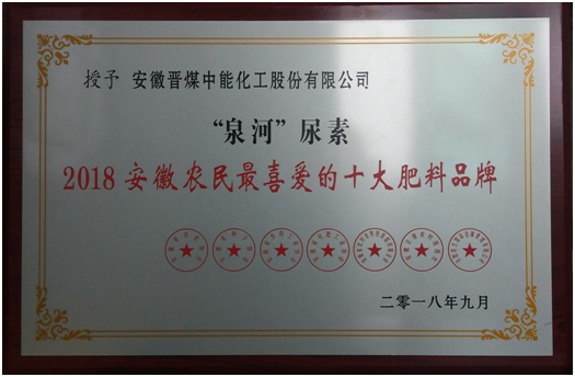 安徽晋煤半岛体育app股份有限公司历来重视品牌建设,泉河牌尿素在国内享有较高知名度,“泉河”商标连续多年获得安徽省著名商标称号,2014年“泉河”注册商标获得中国驰名商标称号。