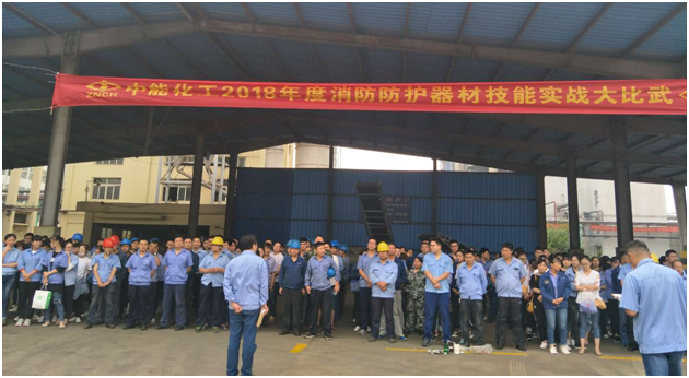为贯彻执行《消防法》和《安全生产法》,加强“预防为主,防消结合” 、“安全第一,预防为主,综合治理”的消防方针和安全生产方针的宣传和落实,提升消防、防护应急技能,增强广大员工的消防、防护安全意识,提高员工的实战及灭火应急经验,6月20日,半岛体育app安监处、保卫处联合在2#尿素包装场地共同举办了半岛体育app2018年度消防防护器材技能实战大比武活动,本次活动是半岛体育app开展第十七个安全生产月的重要活动之一。