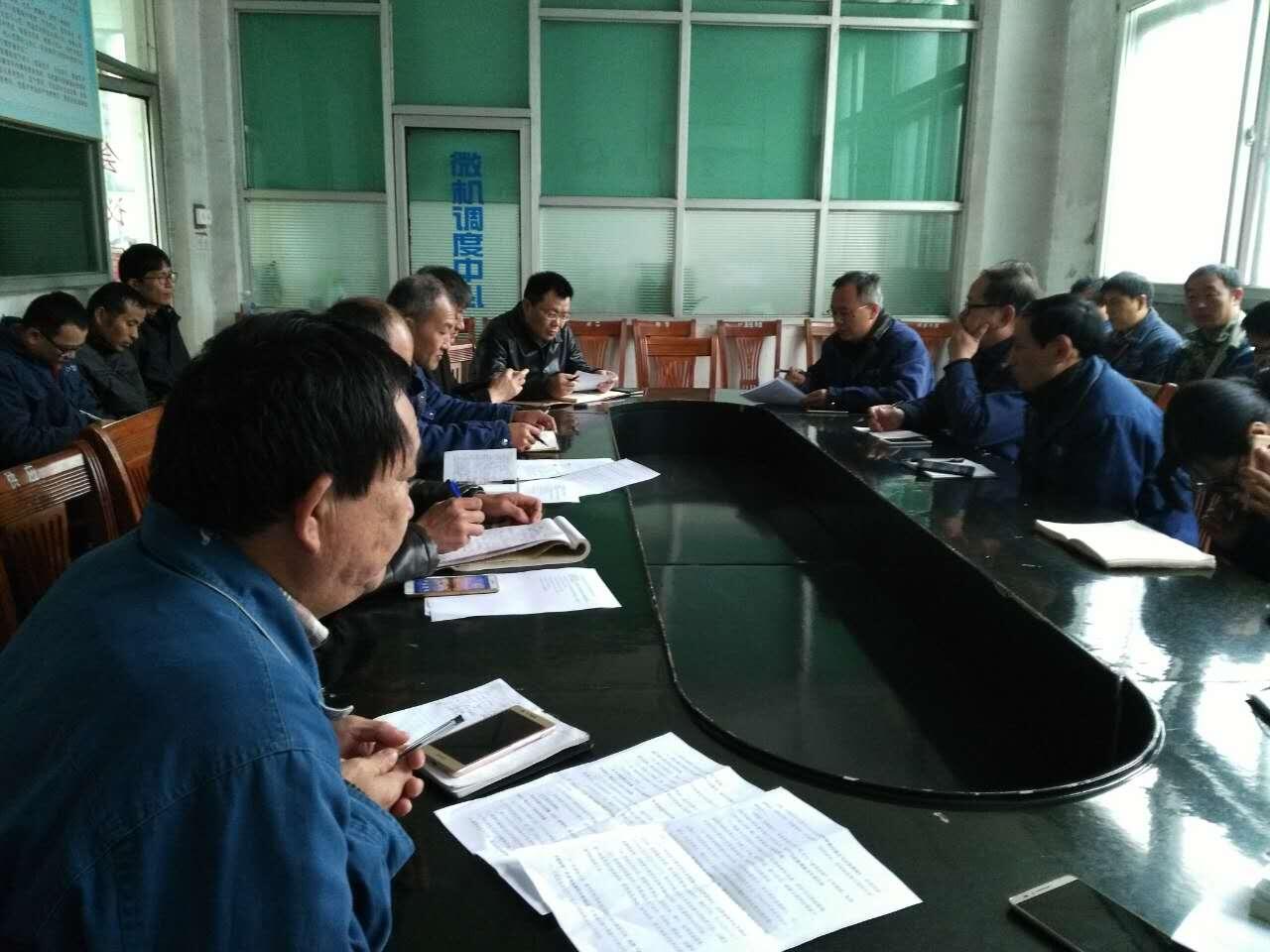 2017年11月21日上午,在公司生产调度室组织召开关于落实《阜阳市重污染天气应急预案》部署动员会议,公司生产主管处室生产处、动力处、设备处、质量环保处、项目处等主要负责人和各生产车间主任参加了会议.