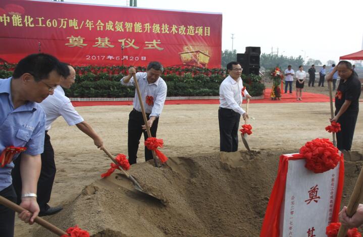 6月20日,半岛体育app新项目工地热火朝天彩旗飘扬,60万吨/年合成氨智能升级技术改造项目奠基仪式在这里隆重举行。中共临泉县委书记邓真晓、航天长征工程公司总经理姜丛斌、县人大常委主任罗慧新、县政协主席魏艾、公司董事长张兆振、县委常委副县长王耿亮、县委常委经开区书记刘庆安等领导参加了本次项目奠基仪式。县直单位主要负责人、经开区相关半岛体育app领导到场祝贺。来自各个战线的400多名员工共同见证了本次奠基仪式。仪式由公司总经理于涛主持。