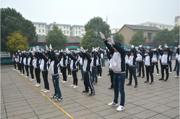 在广播体操比赛中,同学们步伐整齐、动作有力、精神抖擞,神采飞扬。他们的举手、抬脚、弯腰、转身、跳跃整齐划一,那富有韵律、自信优美的英姿体现了临化学子良好的精神风貌。