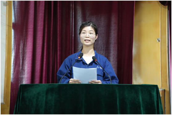 先进个人代表李秋艳宣读了倡议书