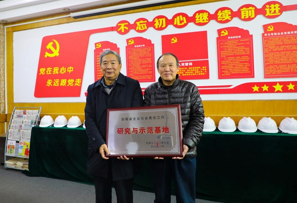 2023年1月5日,安徽工经联会长张德山,秘书长缪静林,阜阳市工经联党委副书记牛忠民,秘书长祝涛,办公室主任姚雨洁等一行莅临公司参观访问,并为公司颁发“安徽省半岛体育app社会责任工作研究与示范基地”荣誉奖牌及证书。公司董事长张兆振,总经理韩振坤,副总经理亓为华,人力资源处处长刘坤等参加座谈交流。