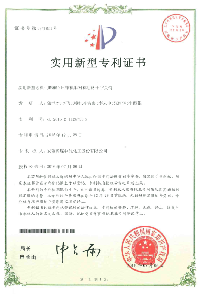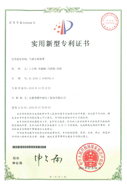 我公司新获5项专利,公司专利总数达到66项,其中发明专利6项。