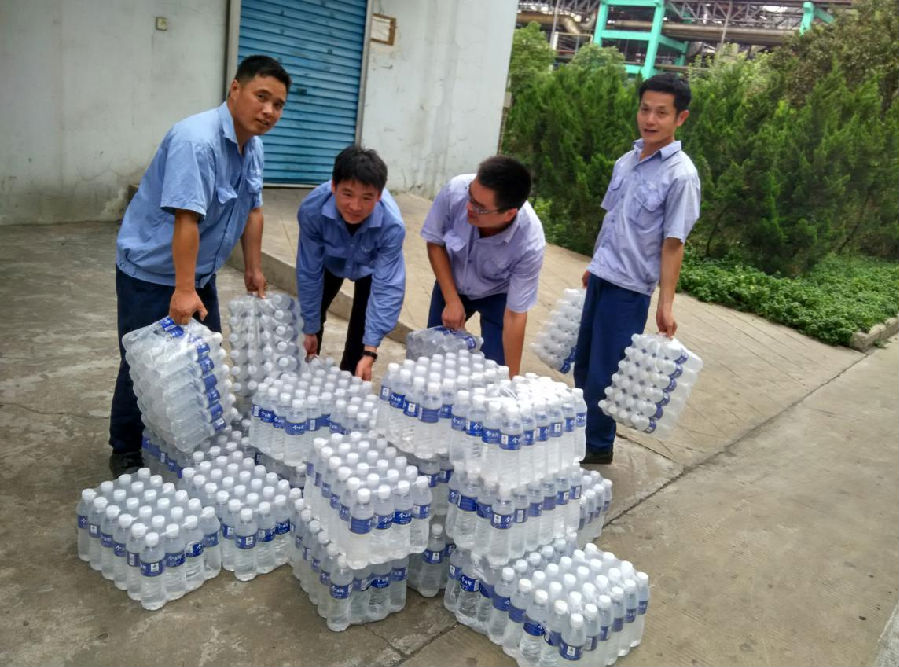 为了更好的保证作业人员的安全高效健康作业,车间进行防暑降温知识宣传学习,并购买矿泉水、西瓜等降温物品,及时发放到检修一线,为高温季节带来一丝清凉,为人员安全带来一份保证。