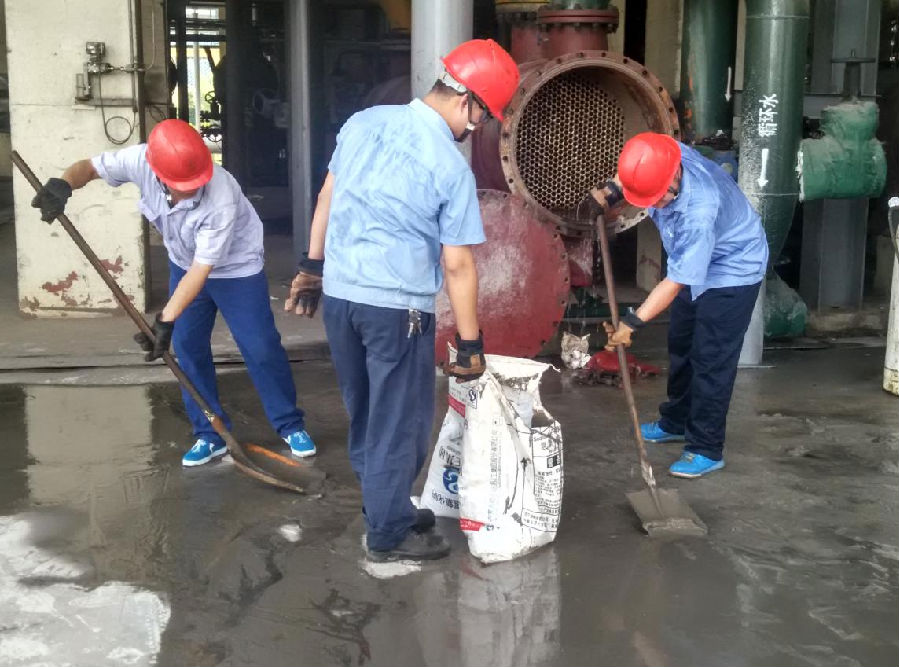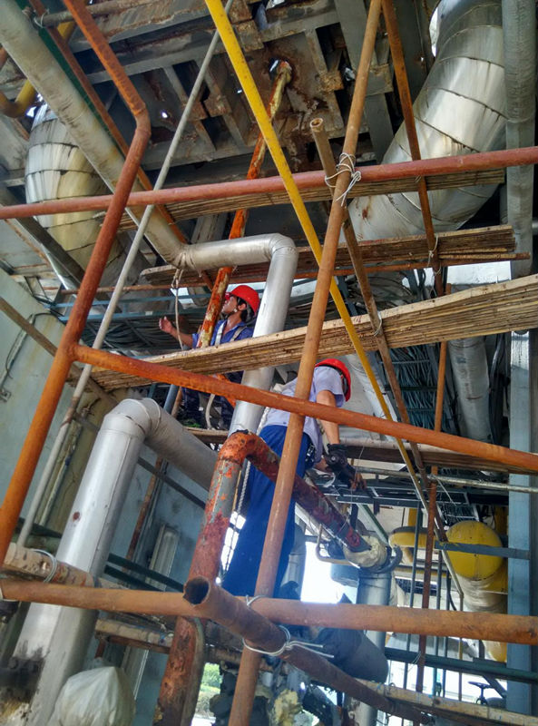 检修开始的第一天上午,室外最高气温高达35℃,空中没有一丝云,头顶上一轮烈日,没有一点风,树木都无精打采地、懒洋洋地站在那里。看那检修现场,一群头戴蓝盔、身着蓝衣的维修工,有的在拎大锤、有的在卸螺母;看那一个个忙前忙后,忙碌疲惫的身影,为准备开车安全打扫检修现场,精心调整准备工艺流程,一个个精神抖擞不知疲惫……汗水顺着脸颊啪嗒啪嗒滴在设备上,身上的衣服也已经湿透紧紧的贴在皮肤上,时不时用拿起肩上的毛巾擦擦脸然后继续工作。再看那边的焊工,为了防止火花飞溅到身上,依然穿着长袖工作服,戴着加长的防烫手套,包的严严实实。
