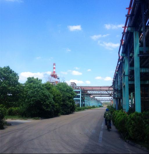 一场秋雨过后,我在厂区马路上向四周观望,突然发现蓝天下的