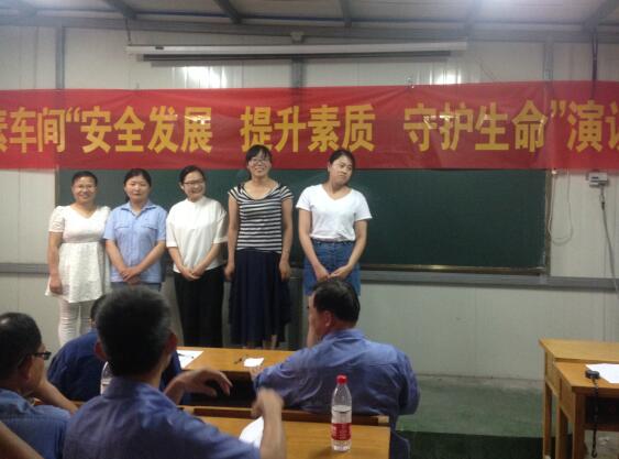 在安全活动月期间,为了进一步加强员工的安全教育,更好地践行安全月的活动主题,尿素车间于2016年6月11日下午2:30,在活动板房举办了一次主题为“安全发展,提升素质,守护生命”的演讲比赛,公司安全处李世新,人力资源处顾东飞,车间副主任张俊、韩亮等七位评委及70余名员工参加了此次演讲比赛。